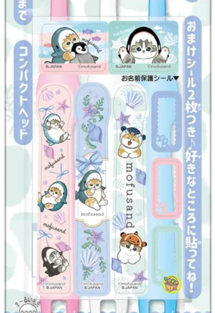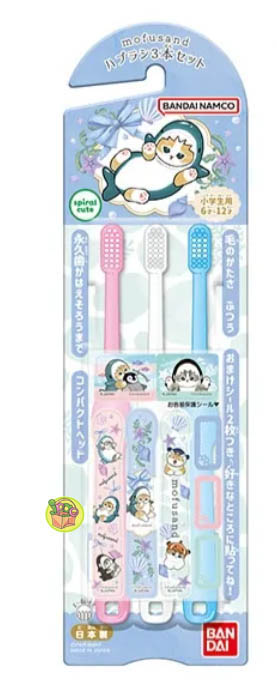日本製 BANDAI 3入牙刷 6-12歲適用 附刷柄+名字保護貼紙~貓福珊迪