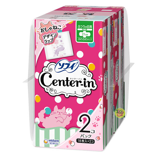 日本製 Center-in 貓咪壓紋蓬鬆衛生棉~日用21cm/36枚