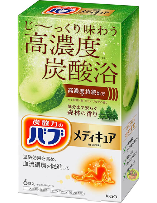 日本製 Kao 花王 高濃度碳酸湯.入浴劑 泡澡泡湯 70克×6錠~綠盒 森林香