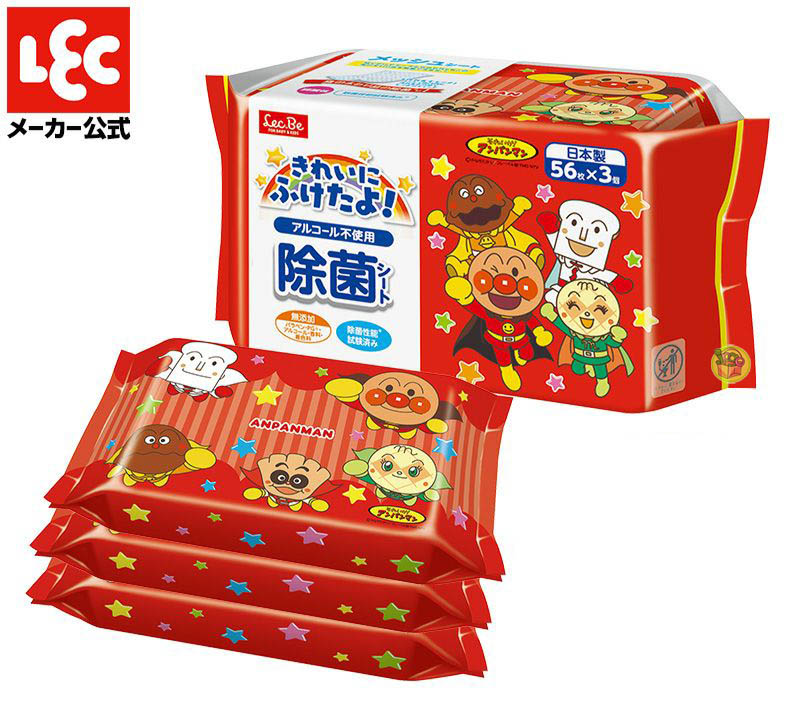 日本製 LEC 除菌清潔濕紙巾 56枚x3包入~麵包超人 紅