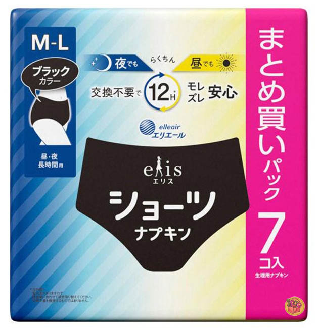 日本進口 大王 elis 12小時安心防漏衛生棉褲~黑色 M-L 7枚入