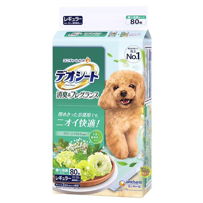日本進口 嬌聯 Unicharm 消臭&芳香 狗狗尿墊~綠色清香 M 44x32cm 80枚