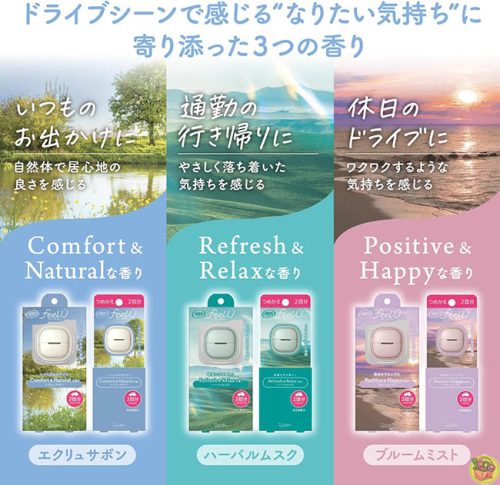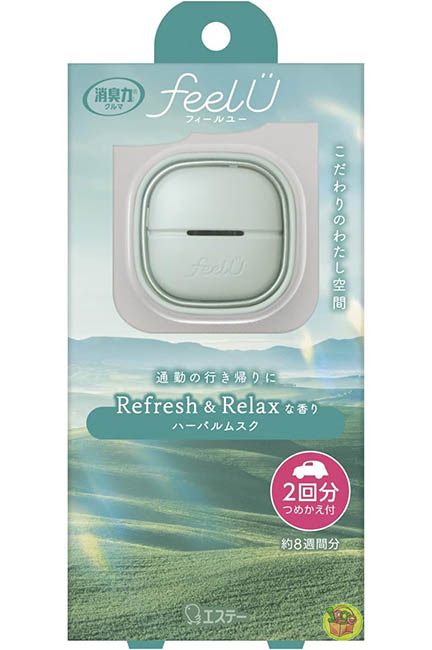 日本進口 雞仔牌 消臭力 feelU 車用夾式芳香消臭劑 2回分~綠 草本麝香
