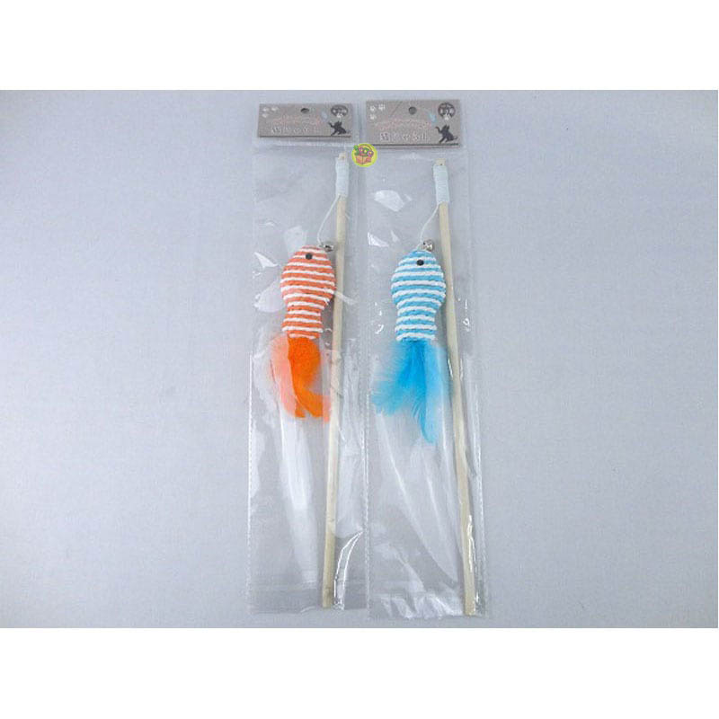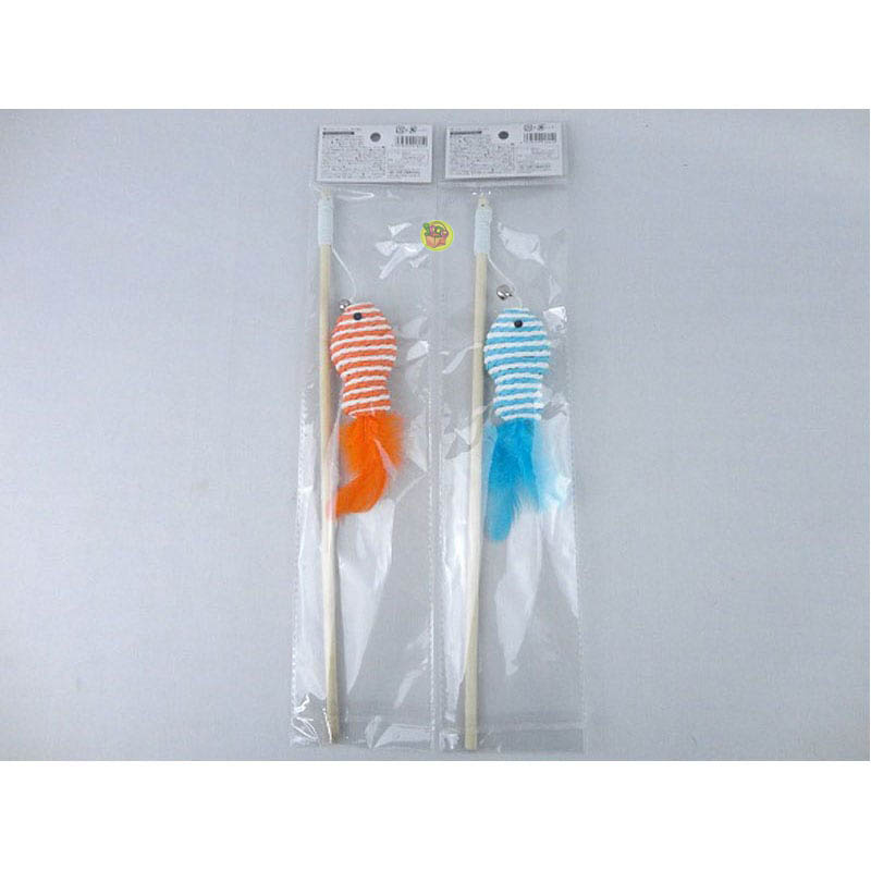 特價-日本進口 大創 鈴鐺逗貓棒 寵物玩具 單入~魚形(羽毛) 顏色隨機出貨