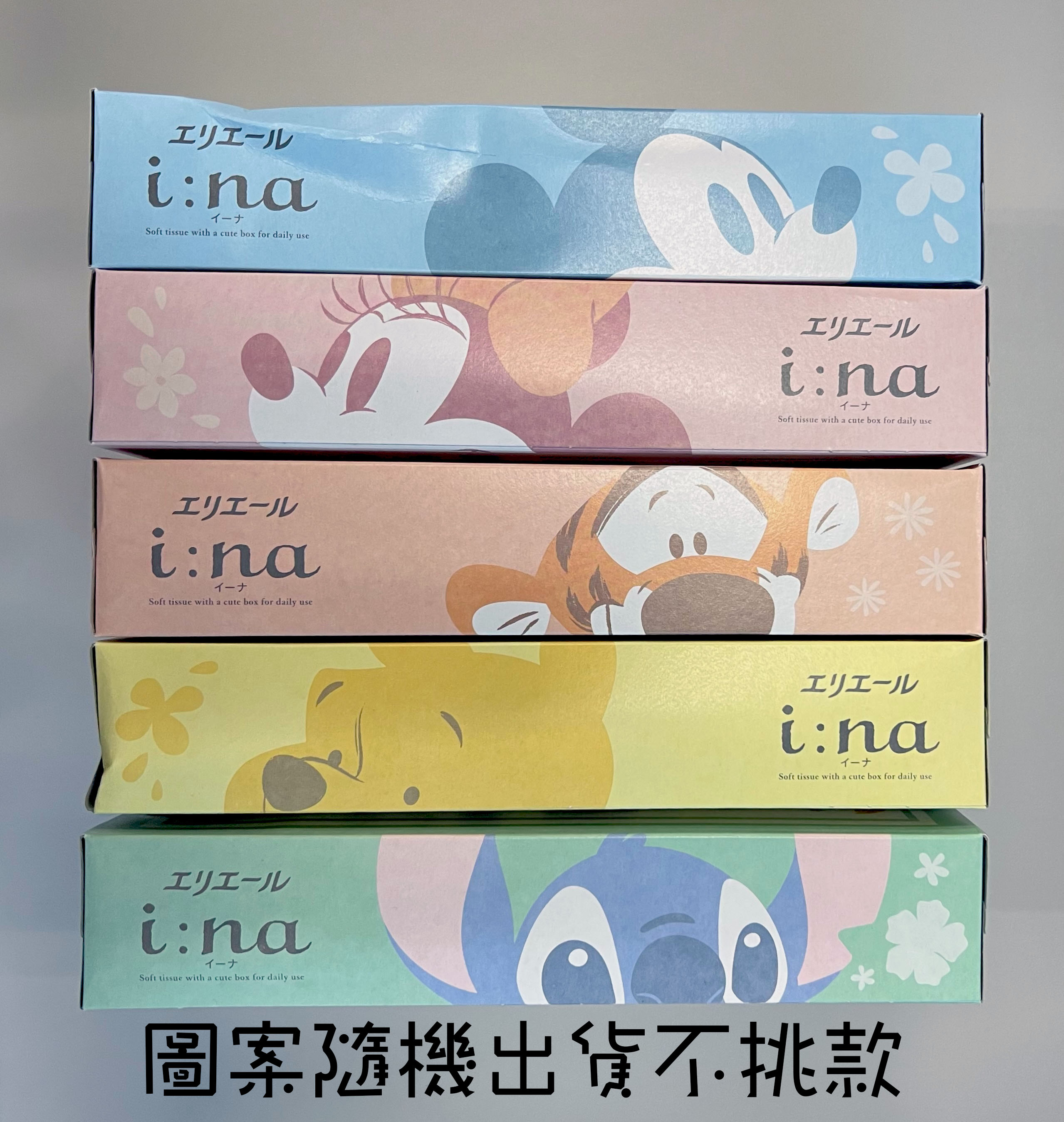 盒損~日本製 大王 elleair i:na 盒裝面紙 150抽 單盒~圖案隨機出貨 迪士尼限定包裝